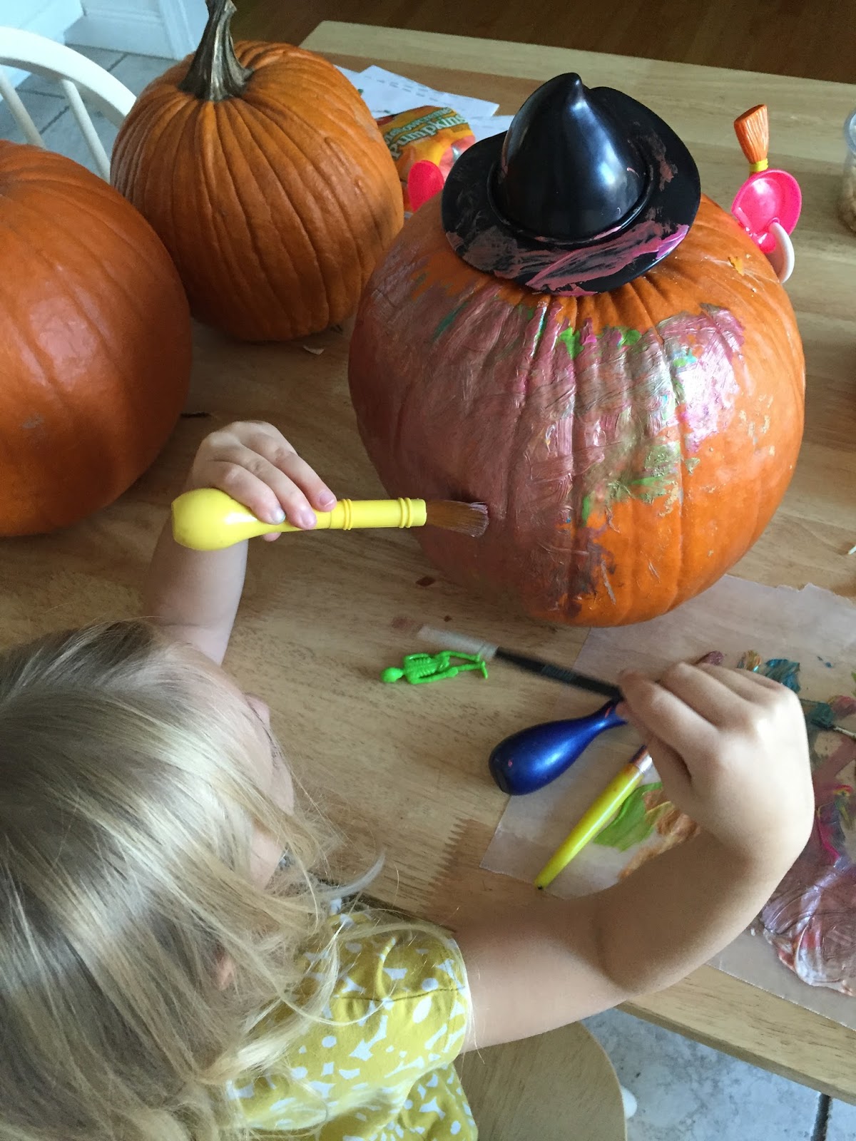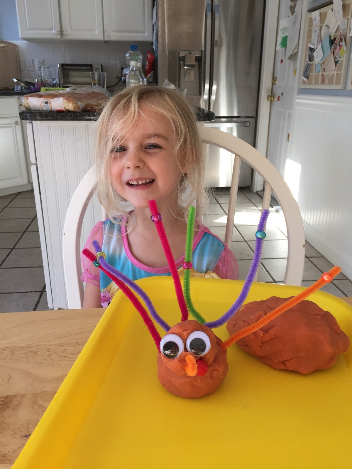 I made pumpkin pie scented play dough and helped Kate turn it into a turkey.