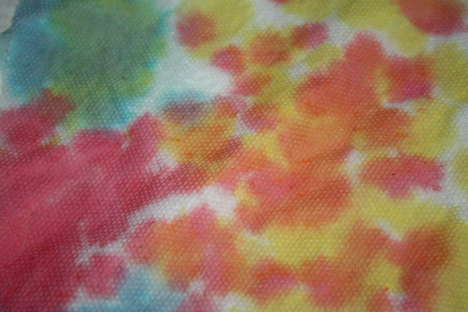 All you do is put a drop or two of food coloring in each tube and then fill the tubes with water and put the caps on. Believe it or not, the liquid stays in the tube unless you push down on something. I put a dish towel on the table and placed a few paper towels on top of it.